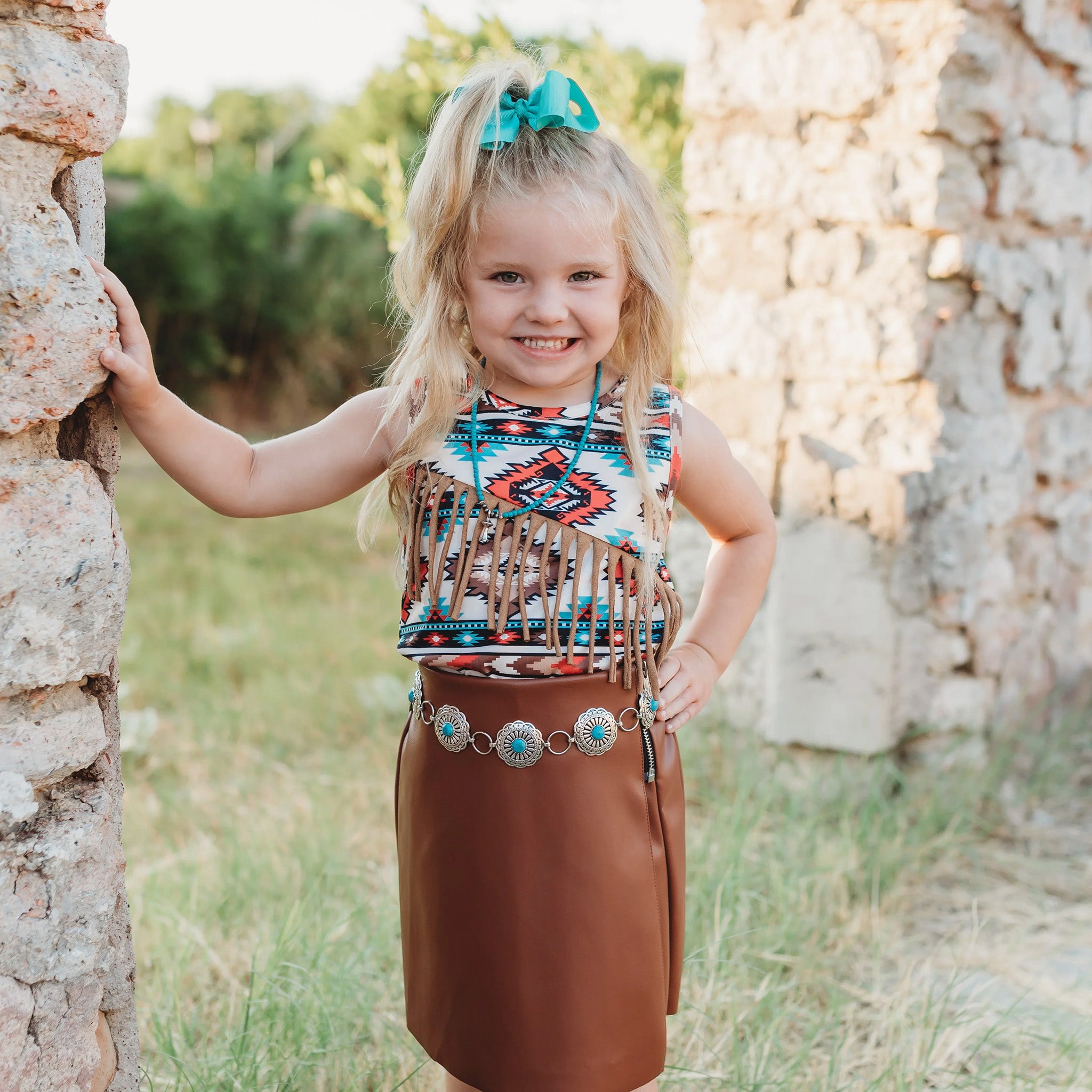 Shea Baby Kids Aztec & Suede Fringe Shirt