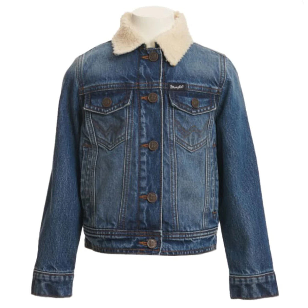 With fall on the horizon, your kiddo needs a Wrangler Girl's Sherpa Lined Denim Trucker Jacket. It's made from 100% cotton on the outside and lined with soft sherpa to keep her warm. It has that classic trucker look, including two chest pockets with the "W" stitching, two hand pockets for her essentials, and a full button closure for easy layering.