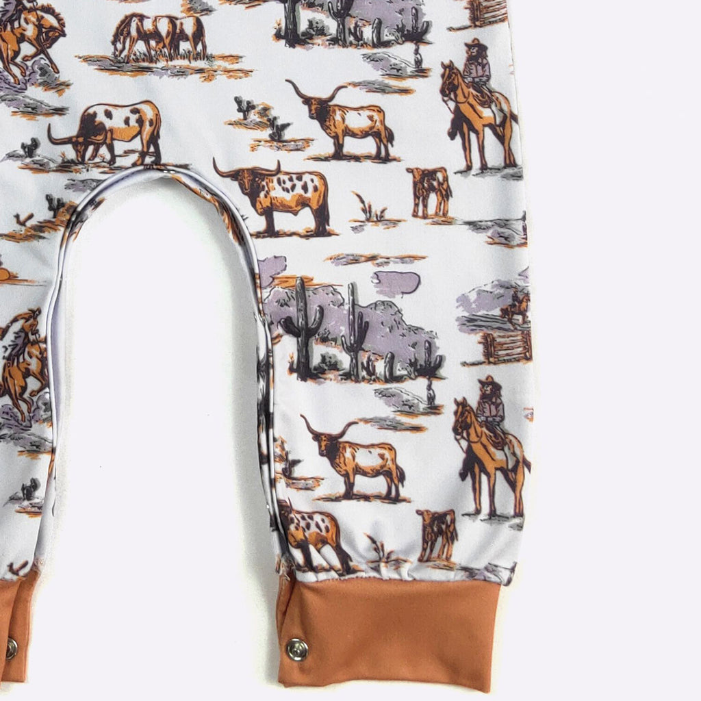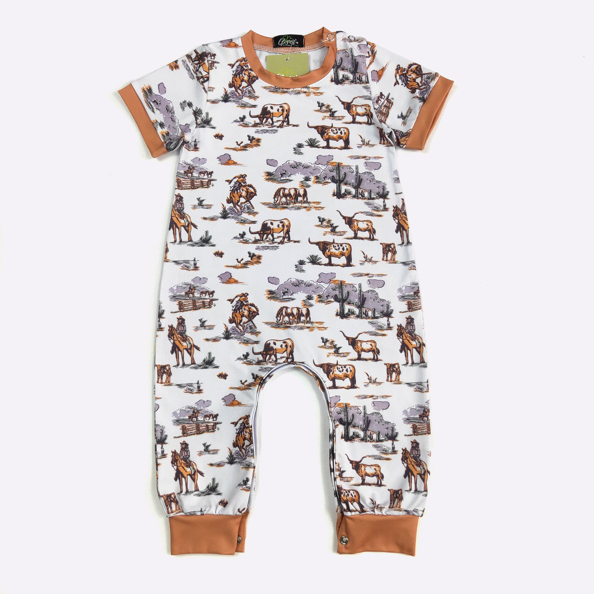 Dress your little one in cowboy charm with the Infant & Toddler Longhorn Ranch Romper. Soft, comfy fabric keeps your child happy during playtime, while the adorable longhorn design adds a touch of ranch-style fun.