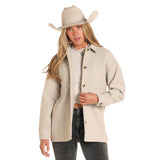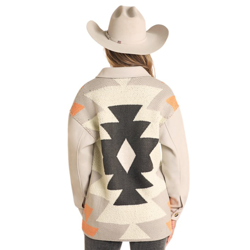 Snuggle into style with this grey Aztec shirt jacket for women. Designed with a relaxed fit, this jacket is made from 100% polyester, offering warmth and comfort. The Aztec pattern adds a trendy touch, while the button-up closure provides a secure fit. Perfect for layering, this long-sleeve shirt jacket is ideal for casual wear.