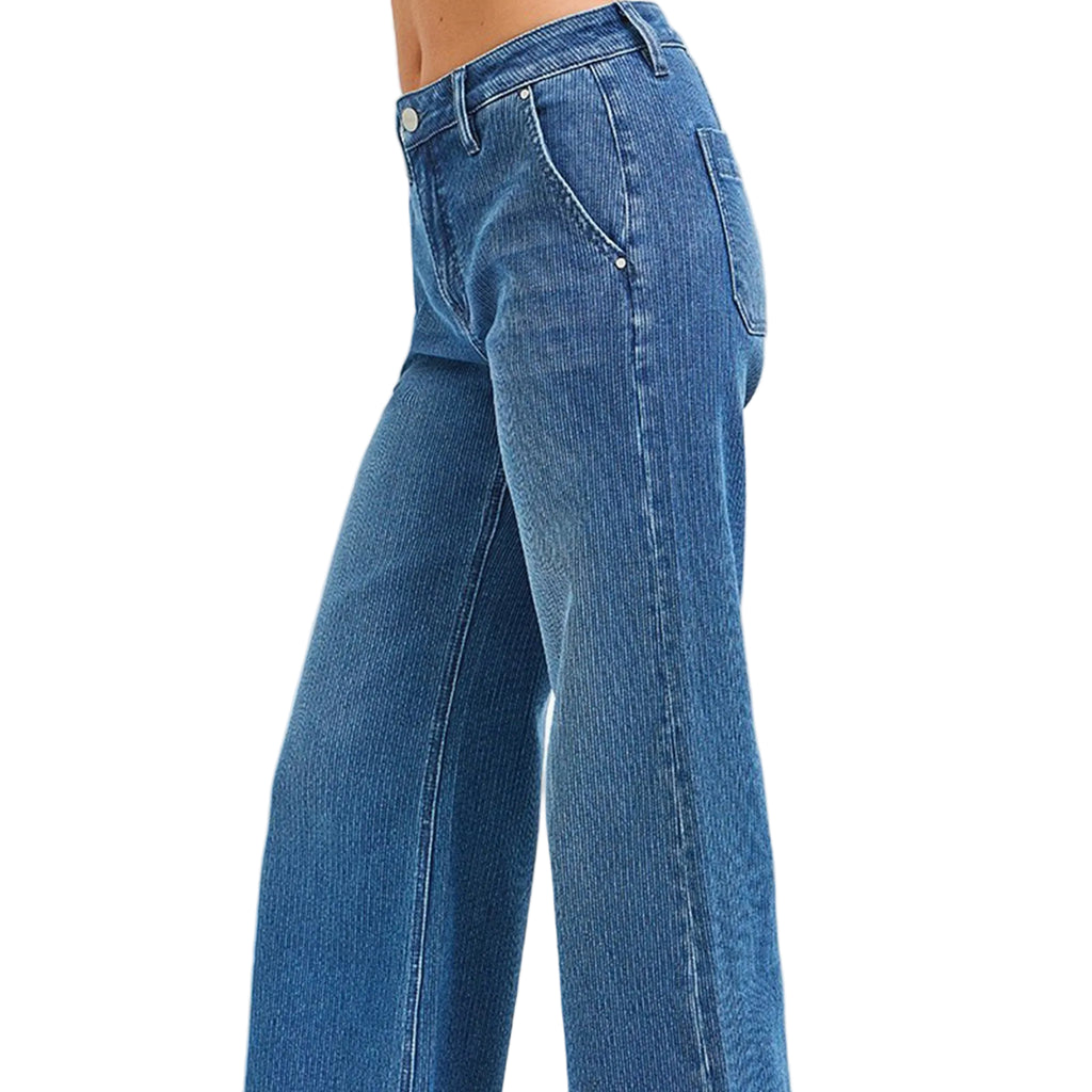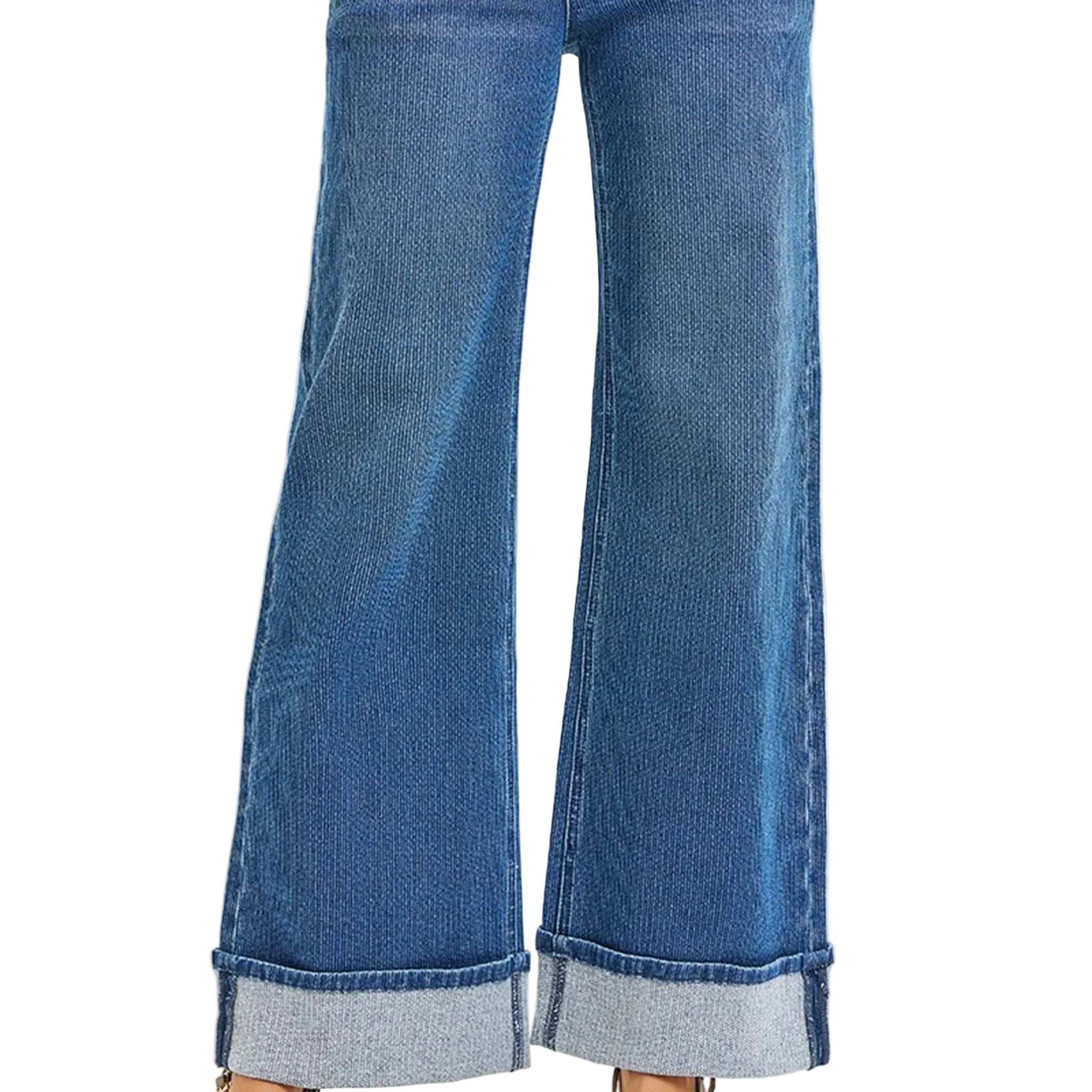 Elevate your denim game with these Risen Mid Rise Wide Leg Cuffed Jeans—a modern take on a timeless silhouette. The mid-rise waistband offers a flattering fit that works with virtually any top, while the wide-leg cut provides comfortable movement and an effortlessly chic vibe. Finished with stylish cuffs that add dimension and personality, these jeans transition seamlessly from casual weekends to dressed-up occasions.