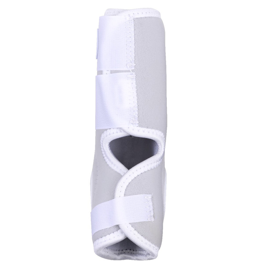 Classic Equine White Neoprene Skid Boots offer a lean, close, and flexible fit that ensures both protection and comfort during rigorous activity. Their asymmetrical skid cup guards against heat and injury from sliding stops, while interior no-turn rolls maintain proper positioning to prevent shifting. The simple, secure closure system allows for quick and safe application, making these boots an expert choice for reliable equine leg protection.