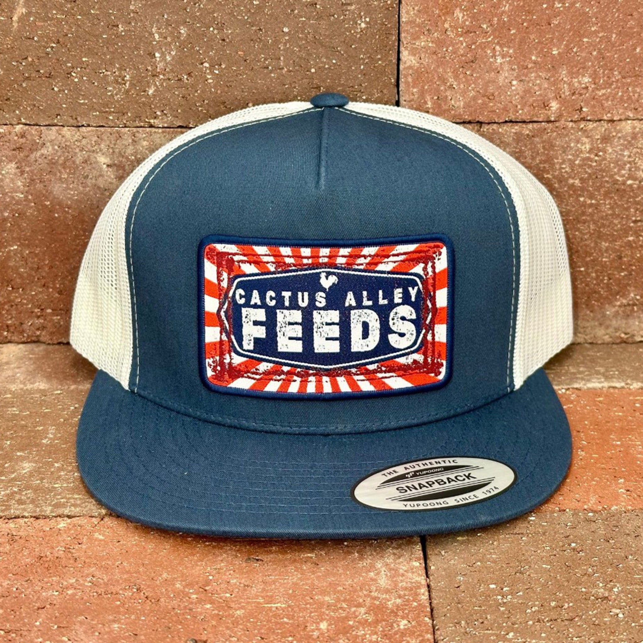 This navy and white "CA Feeds" cap from Cactus Alley is perfect for adding a touch of personality to your outfit. The unique "CA Feeds" patch adds a playful twist to the classic design. Made with high-quality materials, this cap offers both style and durability for any casual occasion.