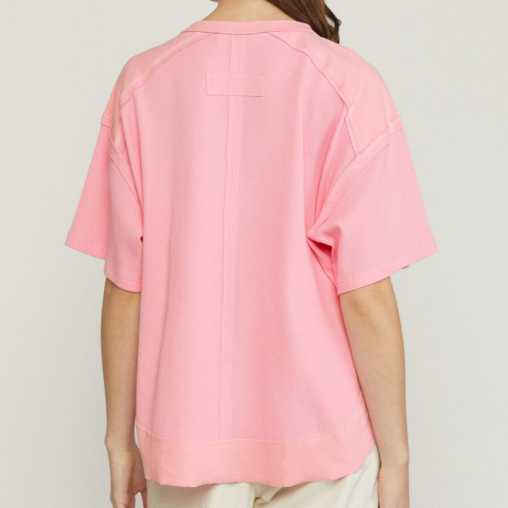 Wear this shirt simple or dress it up with your favorite WE accessories! It features a button down detail at the bust, has a raw edge trim, and is made of material that is lightweight.