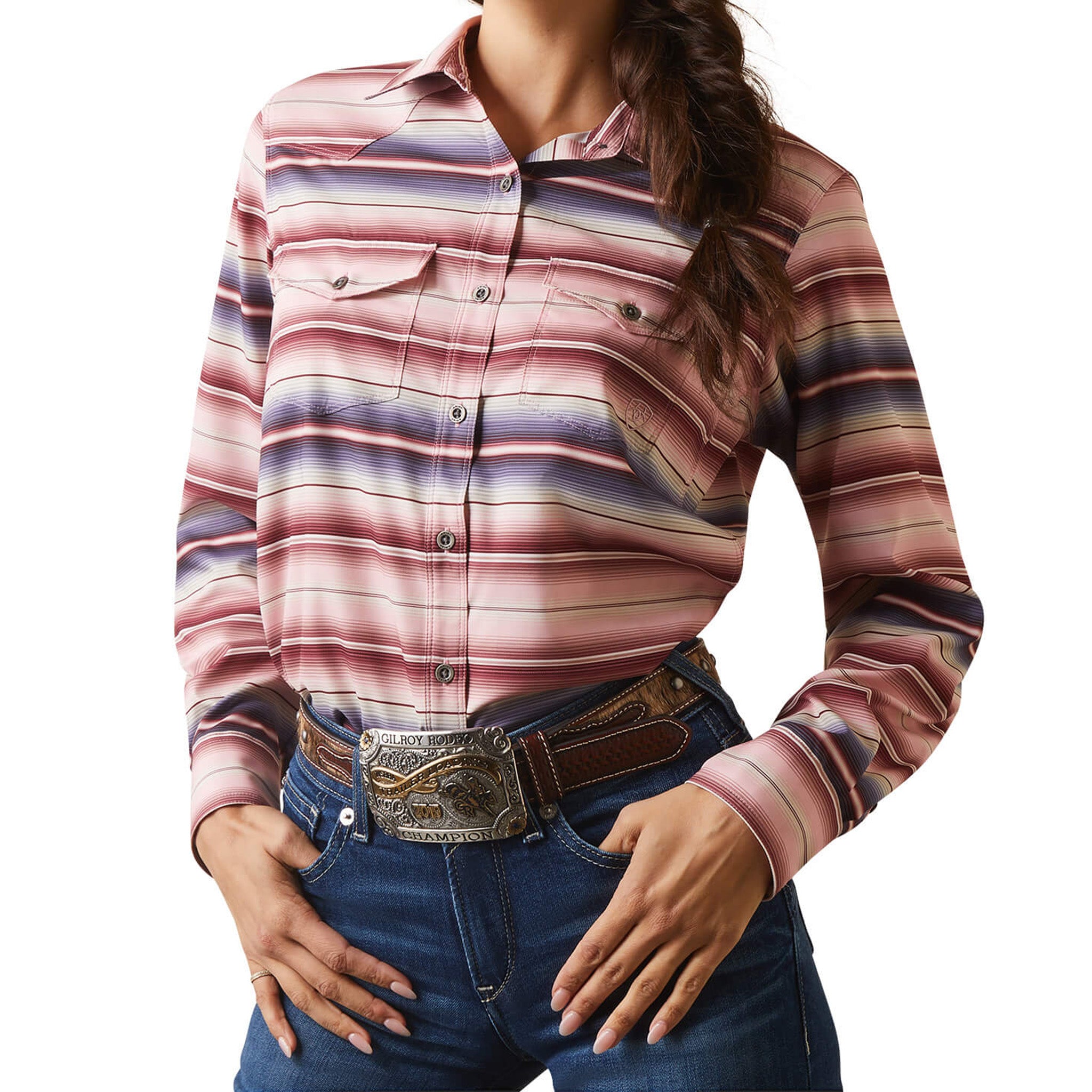 We love the colors in this serape print and it is perfect for the rodeo or going out. This shirt combines traditional Western details with sweat-wicking technology, ultra-breathable mesh panels, and sun protection.