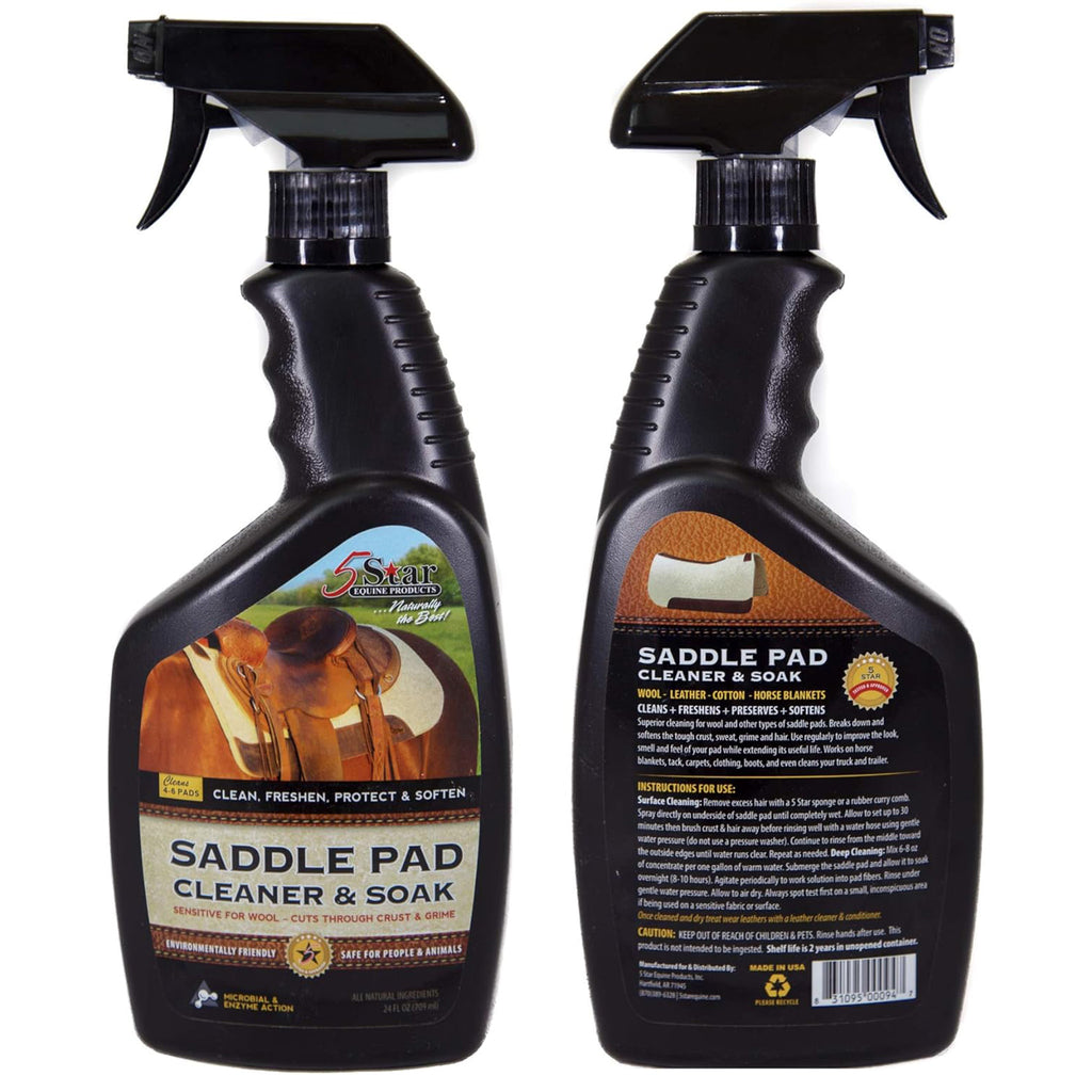 Superior cleaning for wool and other types of saddle pads. Breaks down and softens the tough crust, sweat, grime and hair. Use regularly to improve the look, smell and feel of your pad while extending its useful life. Works on horse blankets, tack, carpets, clothing, boots, and even cleans your truck and trailer.
