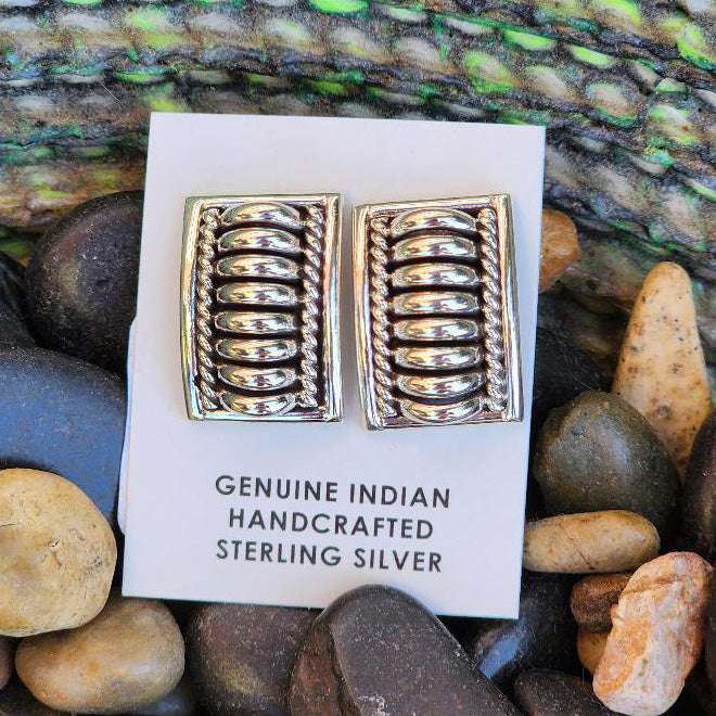 Meet your new favorite everyday earrings—these rectangular sterling silver studs with textured ridges. Clean lines and subtle dimension make them the perfect companion for any outfit, from casual coffee runs to weekend adventures.