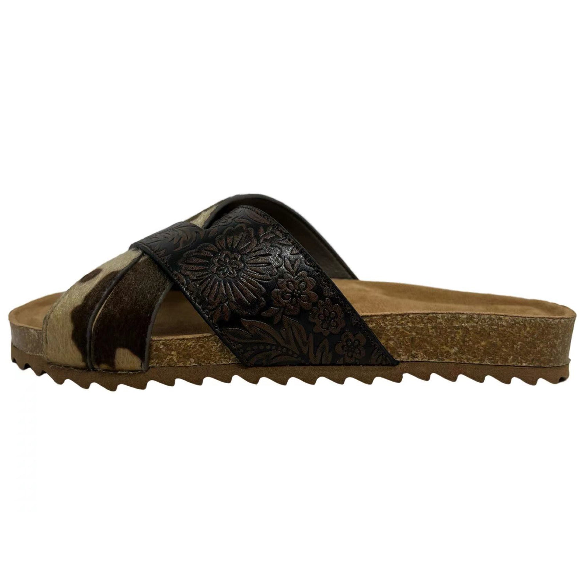 Very G Women's Tooled Brown Cow Strap Sandal