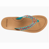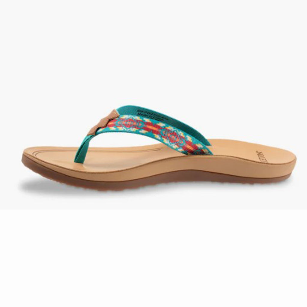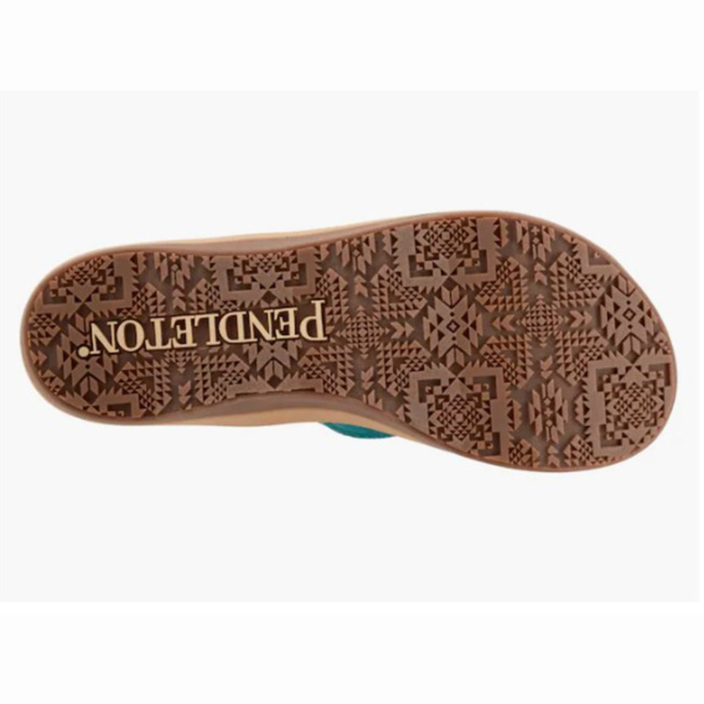 Take a walk in these refreshing Carico Lake sandals by Pendleton! Vibrant turquoise showcases an Aztec geometric pattern of red, orange, and cream. Fabric lining and footbed paired with an outstanding flexible rubber sole will keep you comfortable all day long!