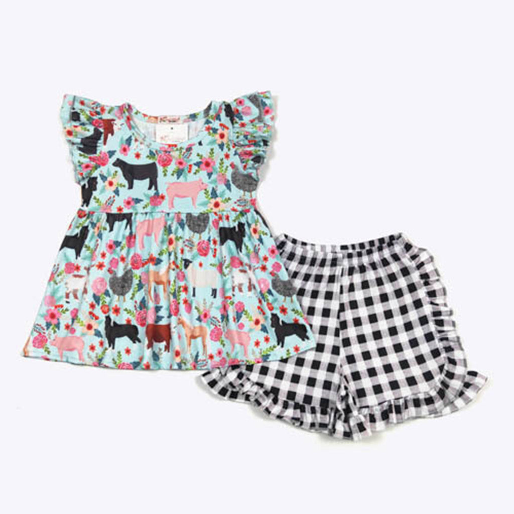 Clover Cottage Girl's Turquoise Farm Floral Set