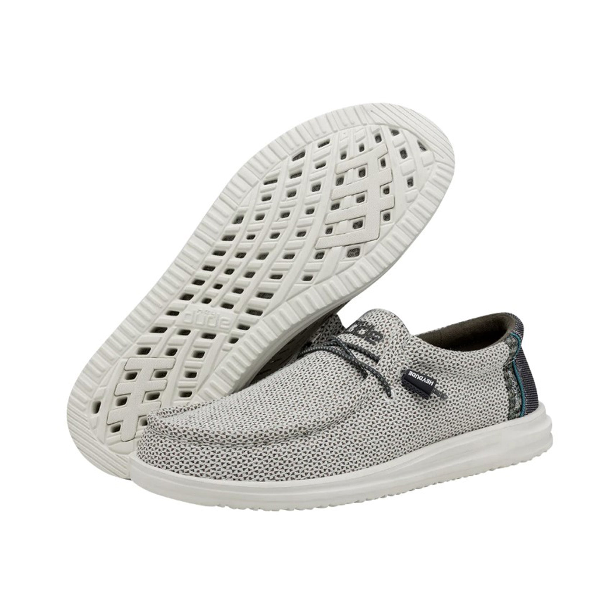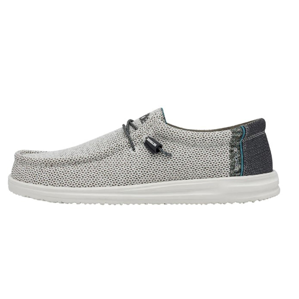 The Wally collection introduces Hey Dude's most popular low-top moc. A breathable chambray-blend upper and lined with a soft, cotton lining for simple strides. Featuring an easy-on system with elastic laces, an ultralight outsole and a cushioned ankle collar for all-day comfort and wear.