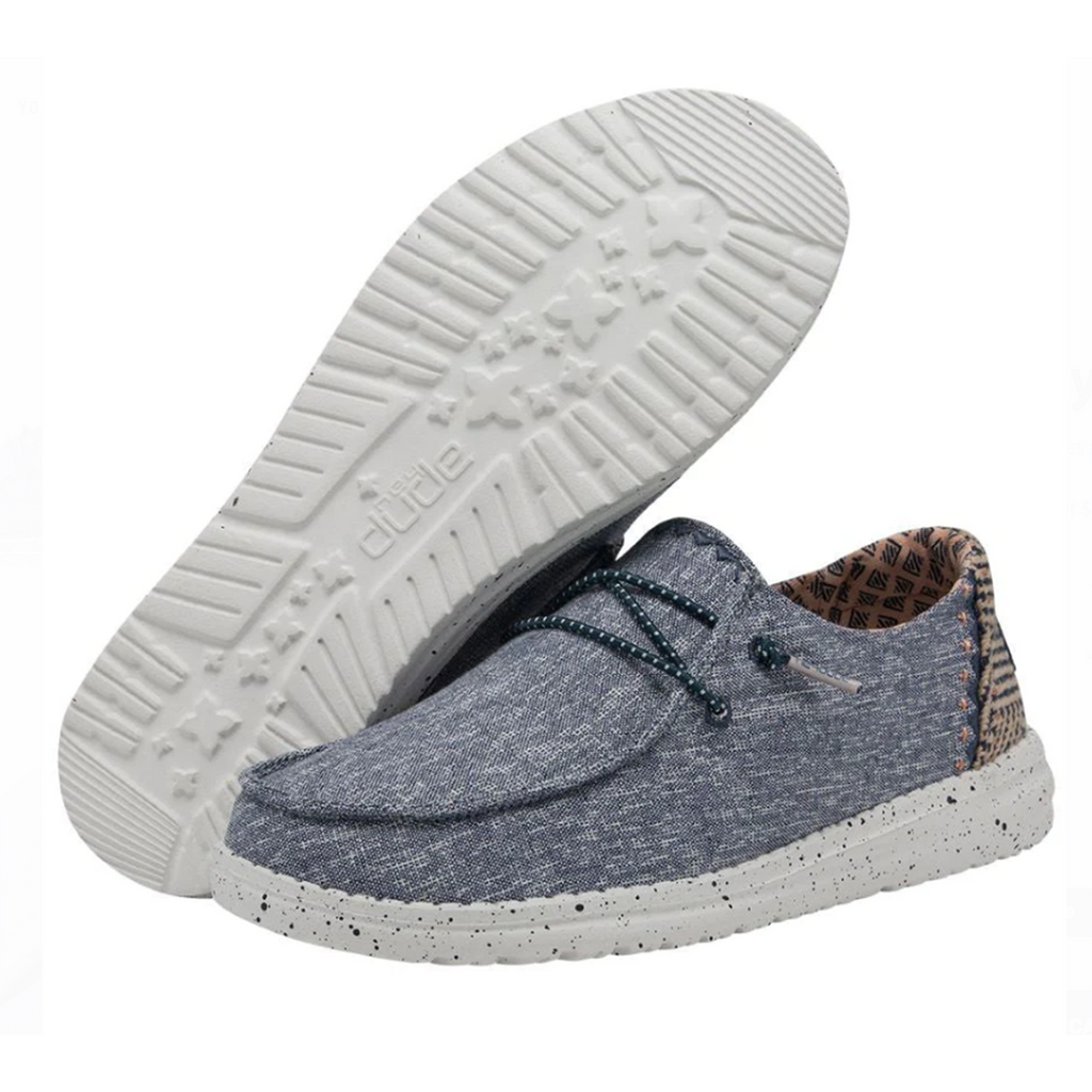 The Wendy Chambray Lapis Blue Moc from Hey Dude, features a soft chambray-coton material that is comfortable yet stylish! Created with a soft, chambray blend upper, finished off with an easy-on elastic lacing system and an ultralight outsole for extra comfort.