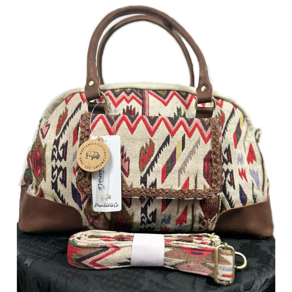 This sweet Montana Co handbag features eye-catching Aztec designs, and even has a nifty front and side pocket with a detachable, adjustable long leather strap.